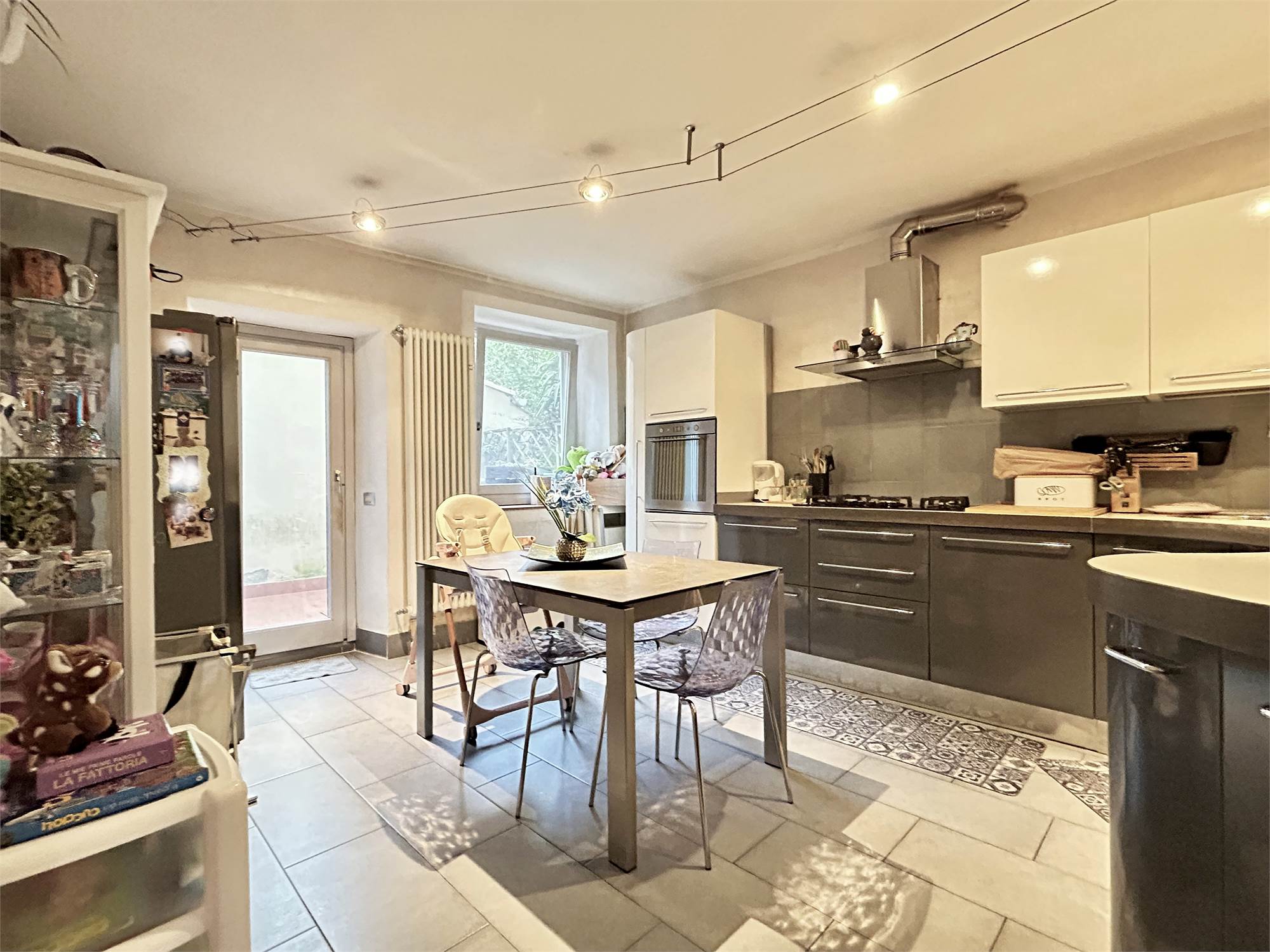 Al piano terra troviamo un elegante soggiorno, bagno con box doccia, ampia cucina abitabile con accesso a resede tergale di utilizzo esclusivo, ideale anche per momenti di relax all’aperto nella bella stagione.