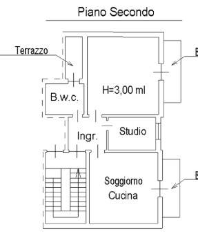 Dall'ingresso si ha accesso all'ampia camera matrimoniale, al soggiorno con cucina a vista, entrambi con balcone, inoltre ad un comodo studio (con possibilità di ingrandirlo così da sfruttarlo come camerina) e al bagno finestrato con uscita su un terrazzo a uso lavanderia.