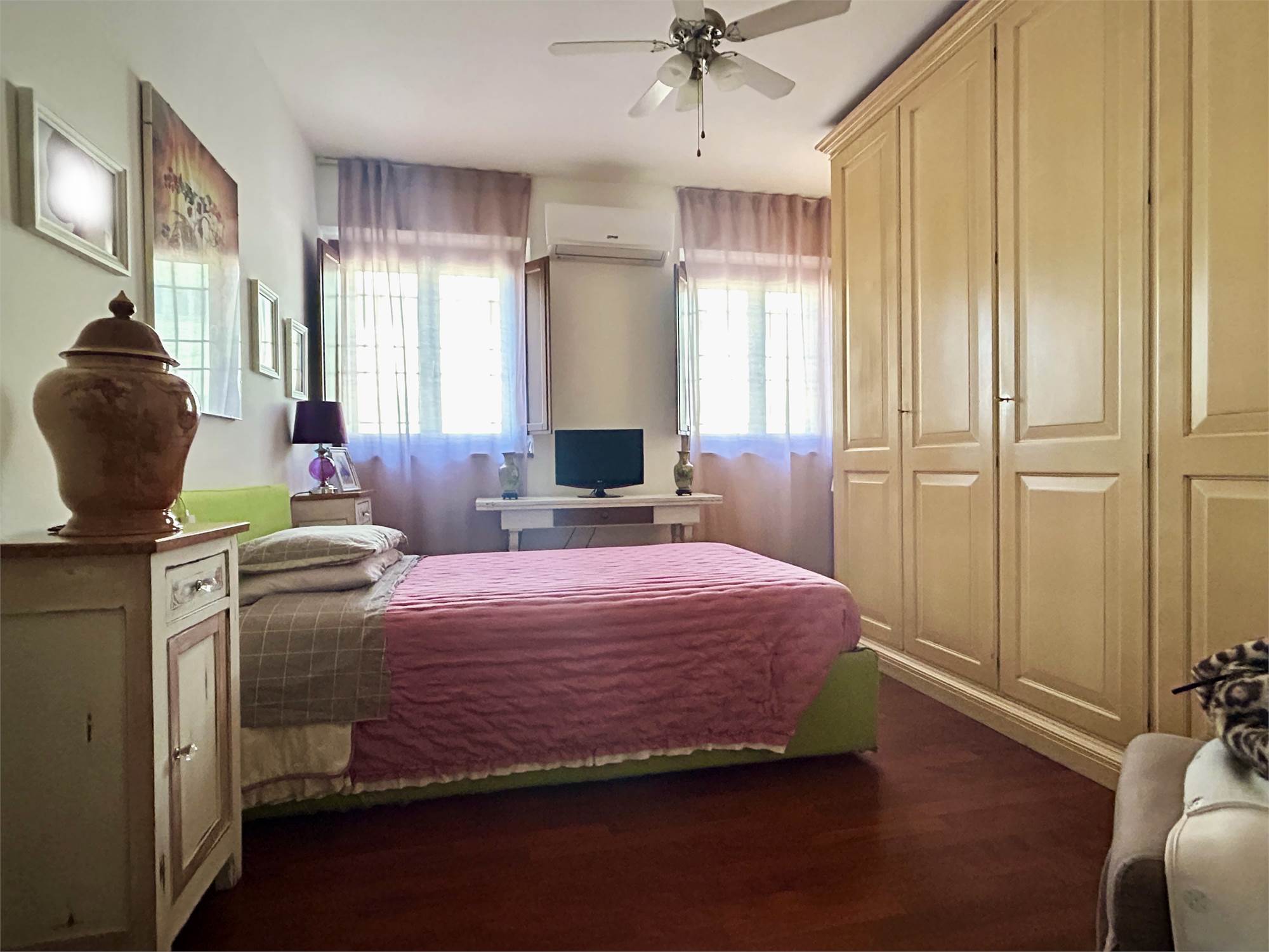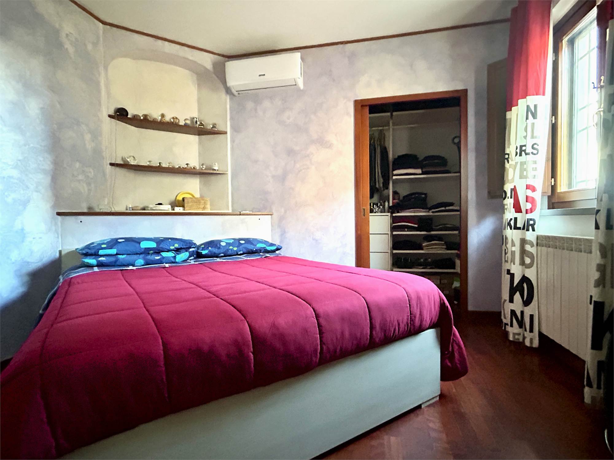 Un disimpegno separa in modo funzionale la zona giorno dalla zona notte, composta da due camere matrimoniali, di cui una con cabina armadio, ampio bagno finestrato e secondo ripostiglio ad uso lavanderia.